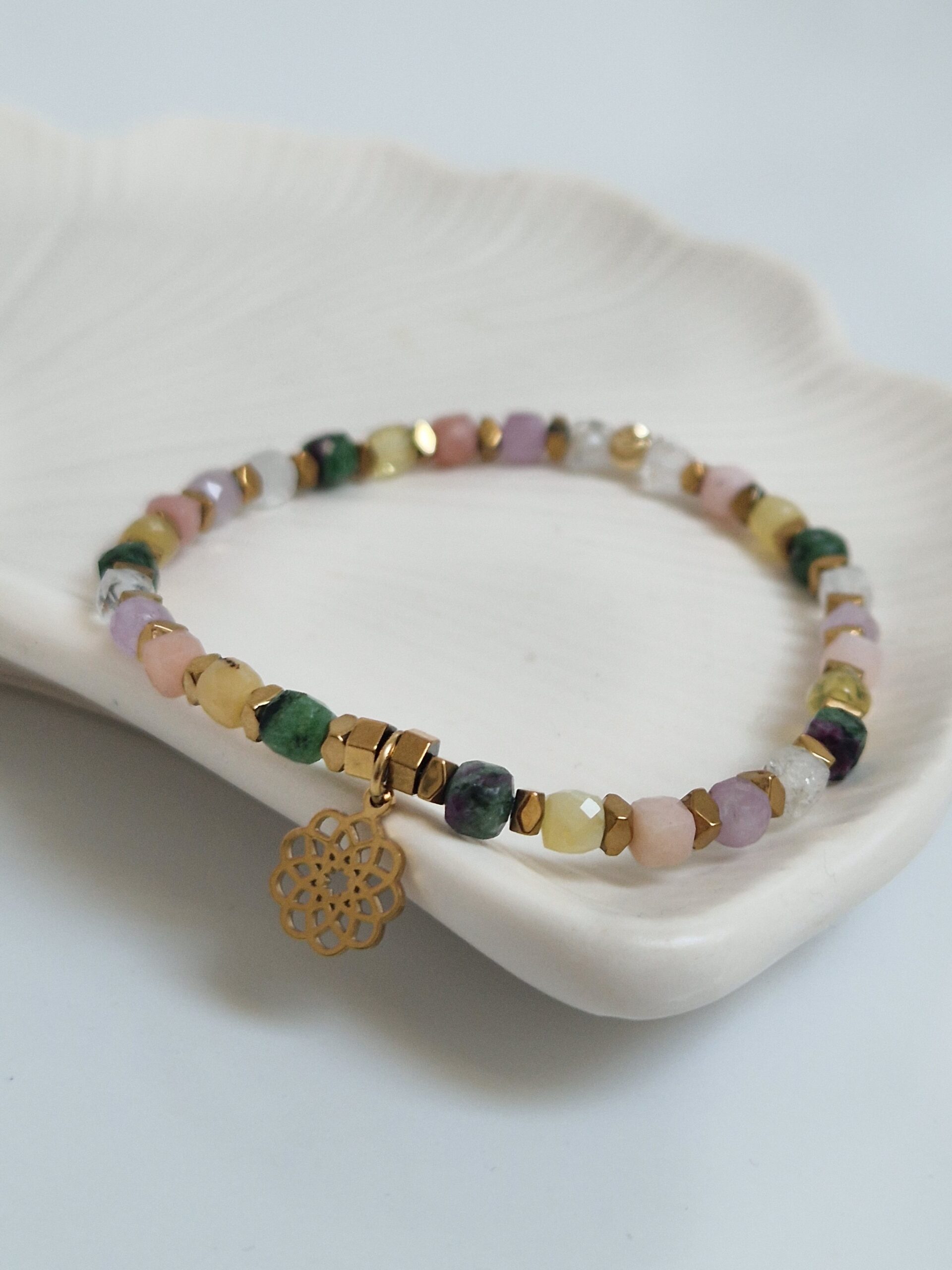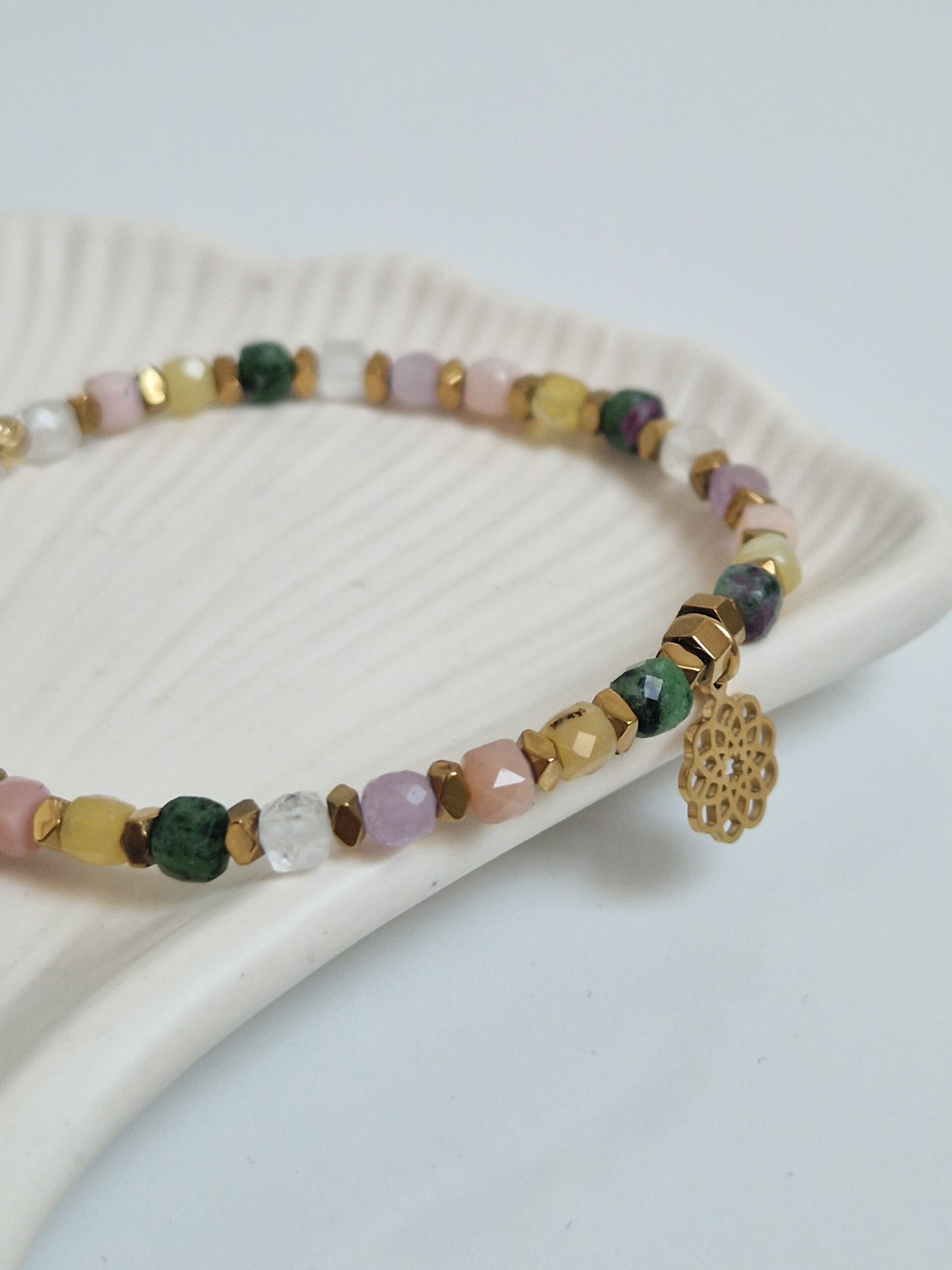 Bransoletka z kamieni naturalnych – zoisyt, kryształ górski, kunzyt, cytryn, opal